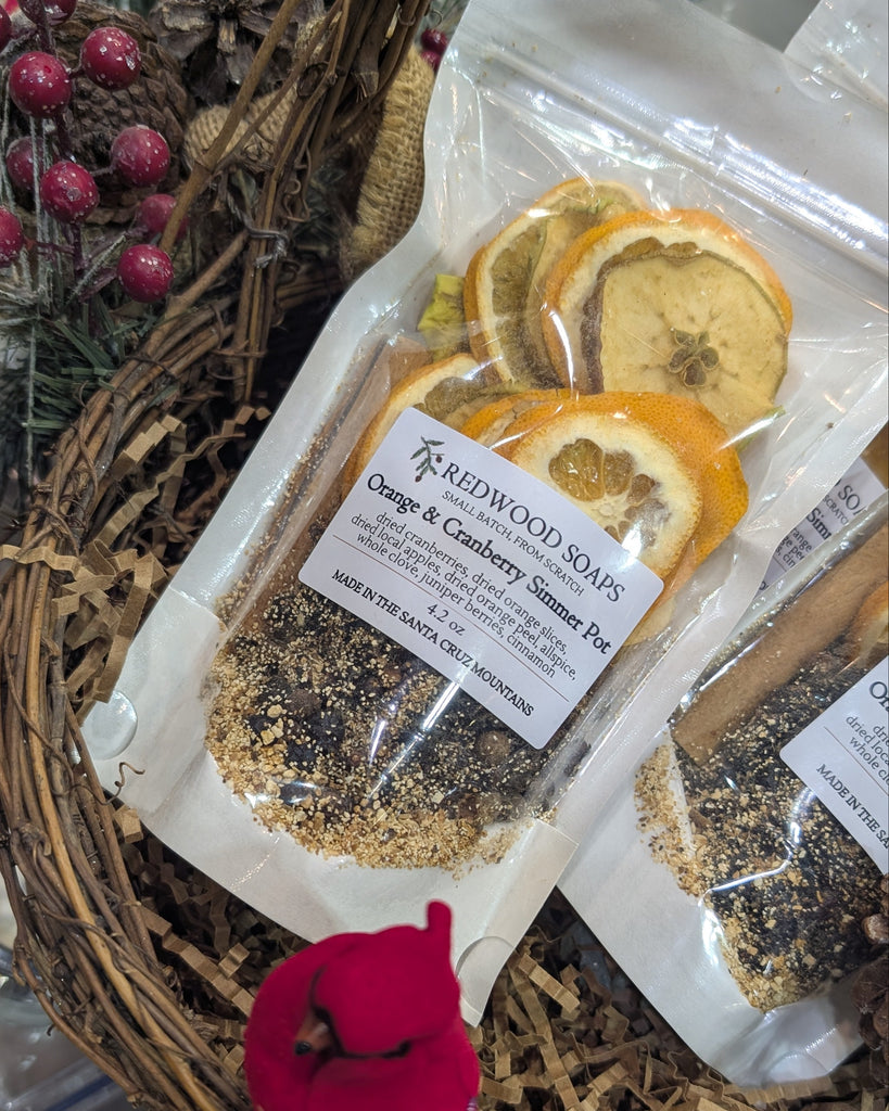 This more traditional scent profile took days to perfect! These simmer pots are packed with sweet and tart dried cranberries and citrusy orange slices and extra orange peel.